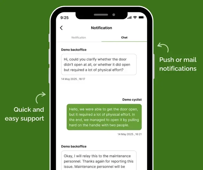 In addition, both operators and cyclists receive notifications for new messages via push notifications or email, ensuring nothing is missed.